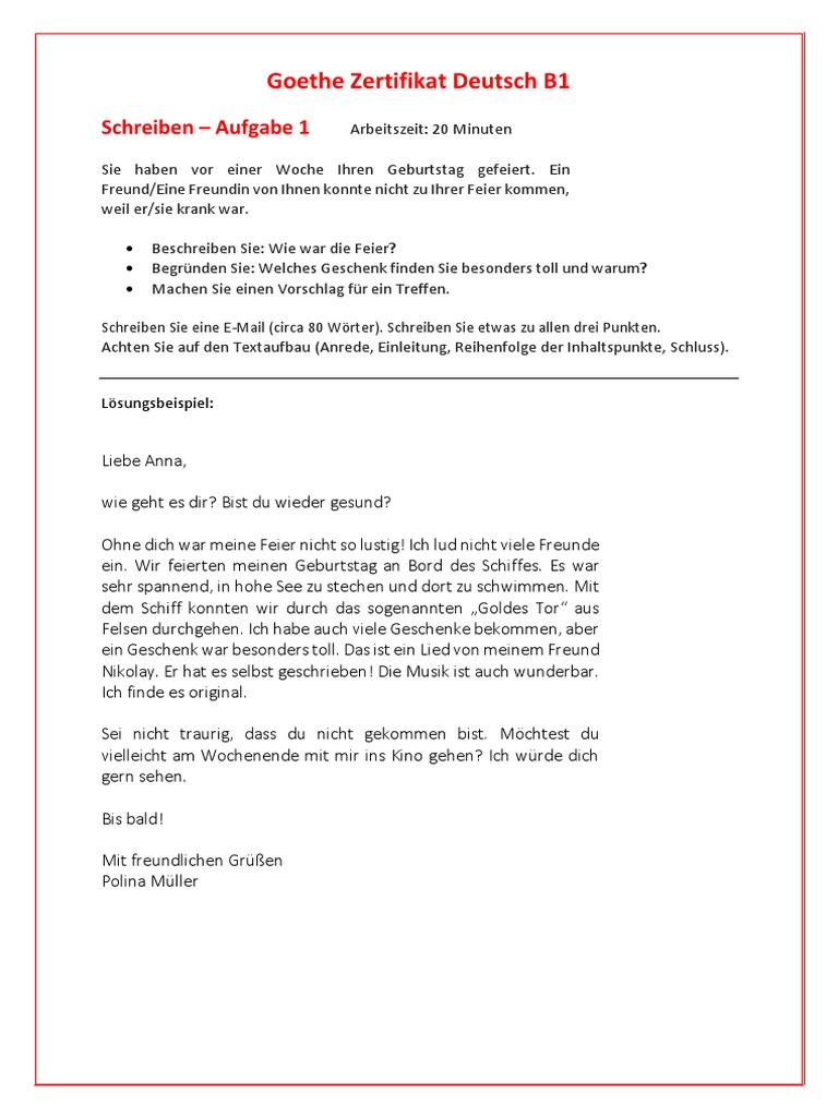 · ein weiterer punkt ist, dass …. Diese themen vorstellen wie können sie schreiben einen brief mit niveau b2 kriterien. Hier finden sie keinen namen, sie schreiben deshalb am besten: Ein freund/eine freundin von ihnen konnte nicht zu ihrer feier kommen ihr werdet sie bei der party kennenlernen. Ich bin gerade in eine nette wohnung ihres hauses eingezogen und möchte deshalb eine kleine party feiern.